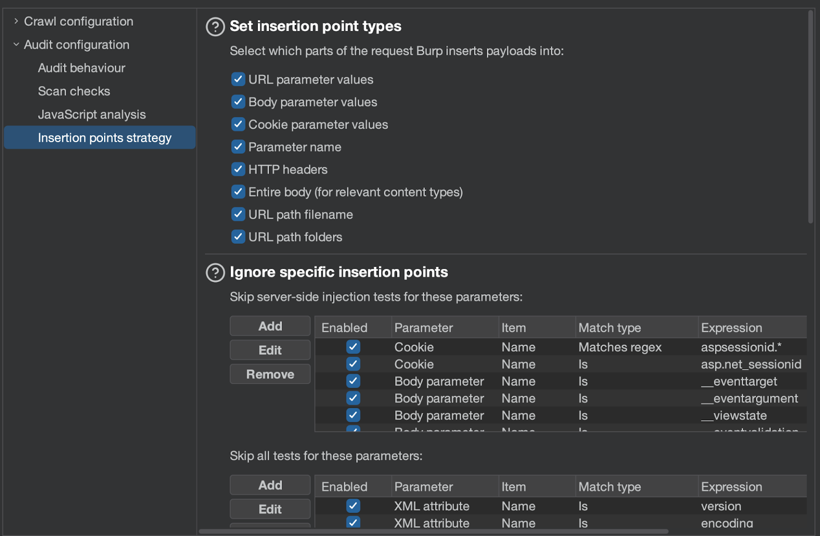 Another capability Burp provides is the ability to define which URLs should be excluded from the scan.
