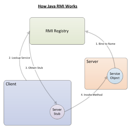 Below image shows the order in which interaction with an RMI registry goes: