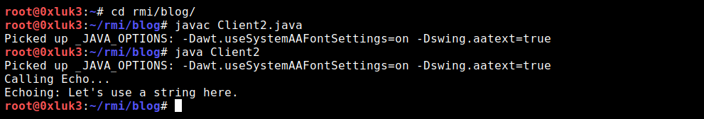 For a complete picture, let’s implement the client code. Client.java is placed in the same directory as Server and RMIInterface.
