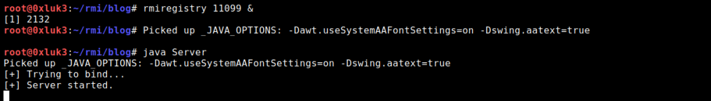 Naming.rebind(“rmi: //127.0.0.1:11099/RMIInterface”, new Server());