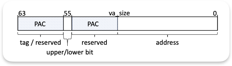- Kontrole uwierzytelniania wskaźników. Uwierzytelnianie wskaźnika uniemożliwia jego sfałszowanie w celu oszukania jądra (np. fałszywy wskaźnik funkcji jako payload). Atakujący musiałby ominąć PAC, co nie jest trywialne i zazwyczaj wymaga oddzielnego ataku typu side-channel lub wycieku informacji (np. podatność PACMAN).