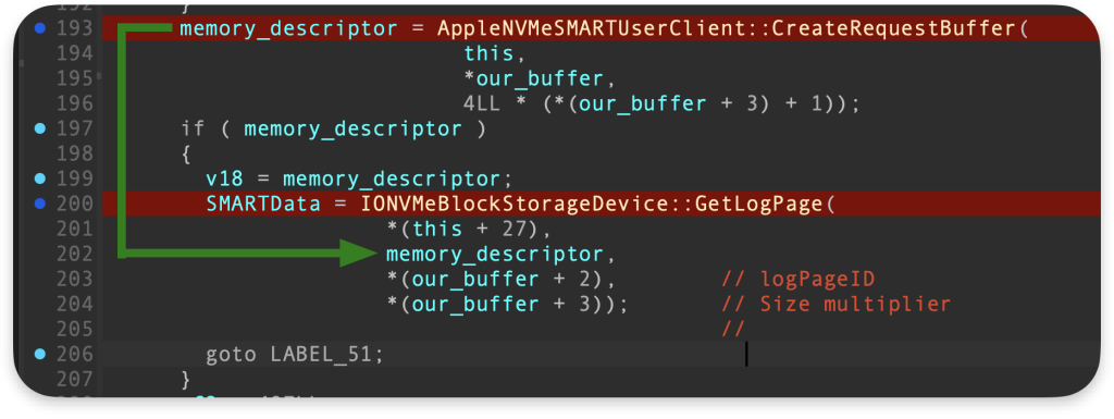Deskryptor (memory_descriptor) dla tej pamięci jest używany w funkcji: IONVMeBlockStorageDevice::GetLogPage: