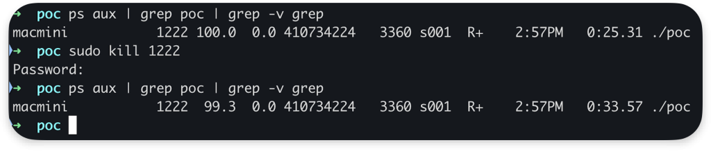 clang poc.c -o poc -framework IOKit ;