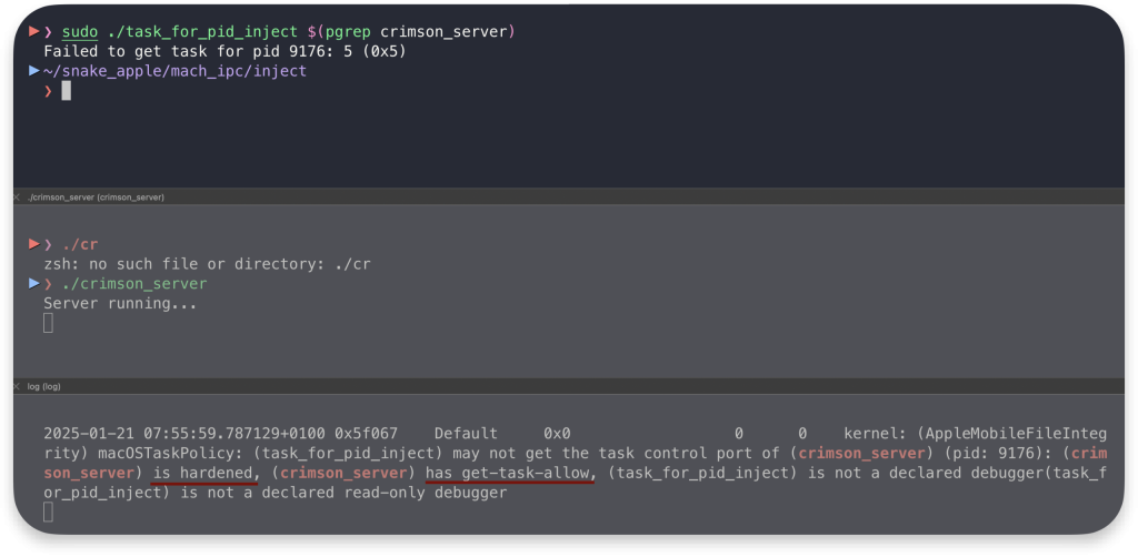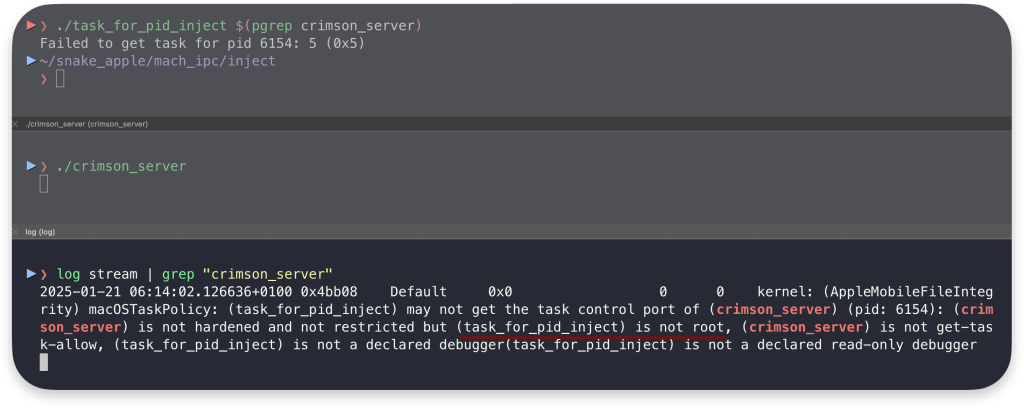 Jednak używanie Task Portów na tym etapie nie przynosi dodatkowych korzyści, chyba że chcemy umożliwić innemu procesowi kontrolowanie skompromitowanego procesu za pomocą Task Portu.